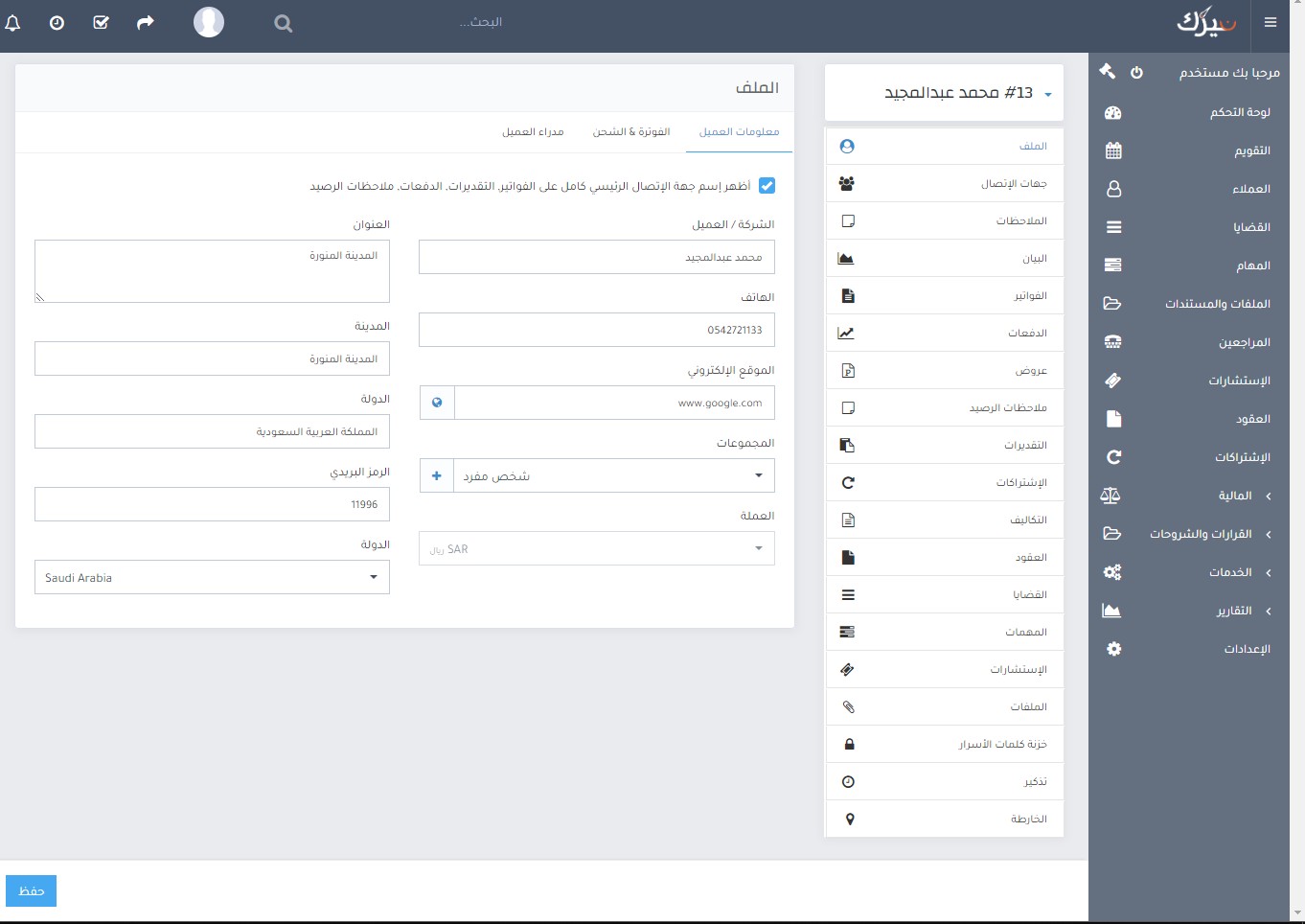 بواسطة النظام، ستكون لديك القدرة على حفظ ومعرفة كل ما قد تحتاج لعملائك والإهتمام بقضاياهم