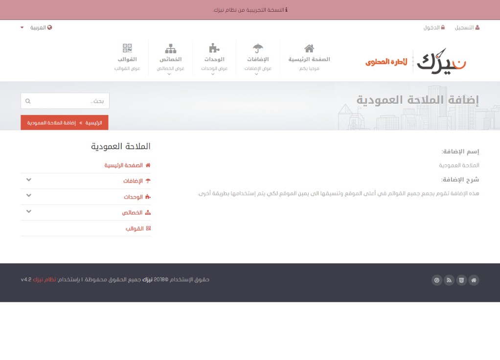 منها إضافة الملاحة العمودية في حال رغبتك بها