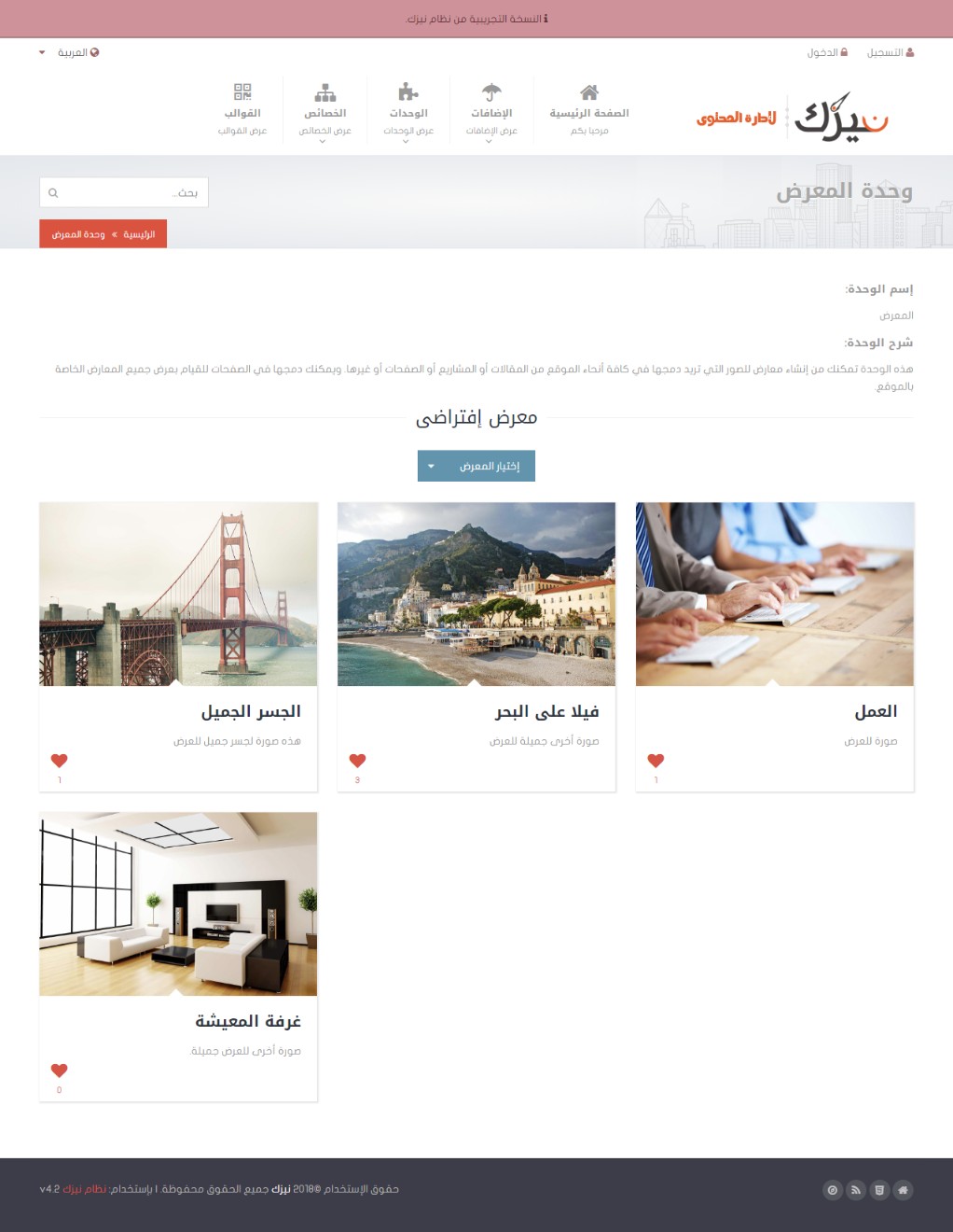 بعض الوحدات تمكنك من إنشاء إضافات كدوارات الصور وغيرها