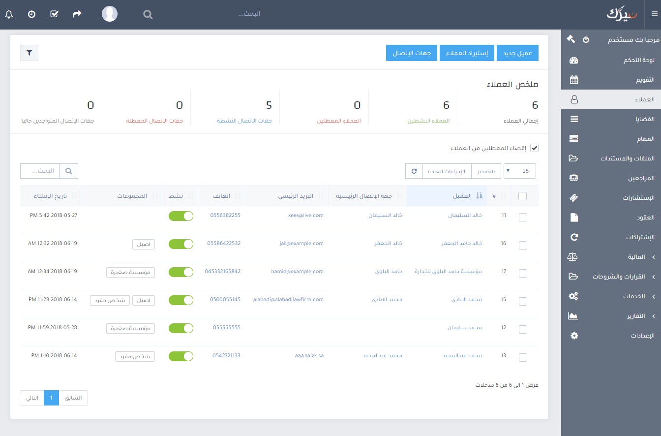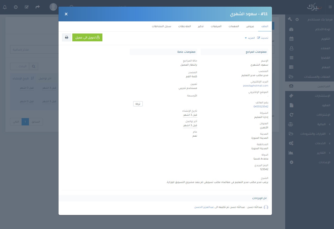 بواسطة النظام، ستكون لديك القدرة على حفظ ومعرفة كل ما قد تحتاج لعملائك والإهتمام بقضاياهم