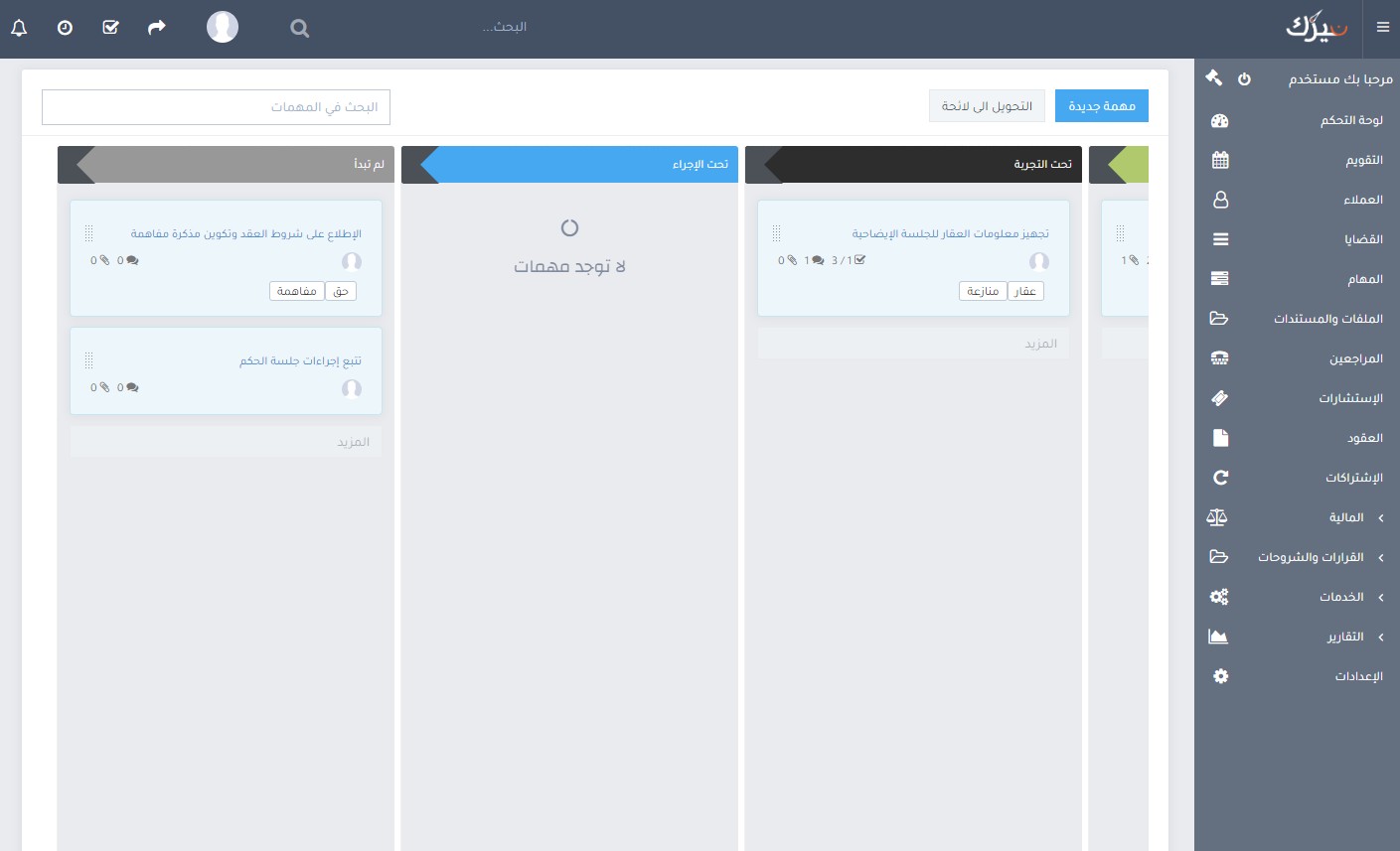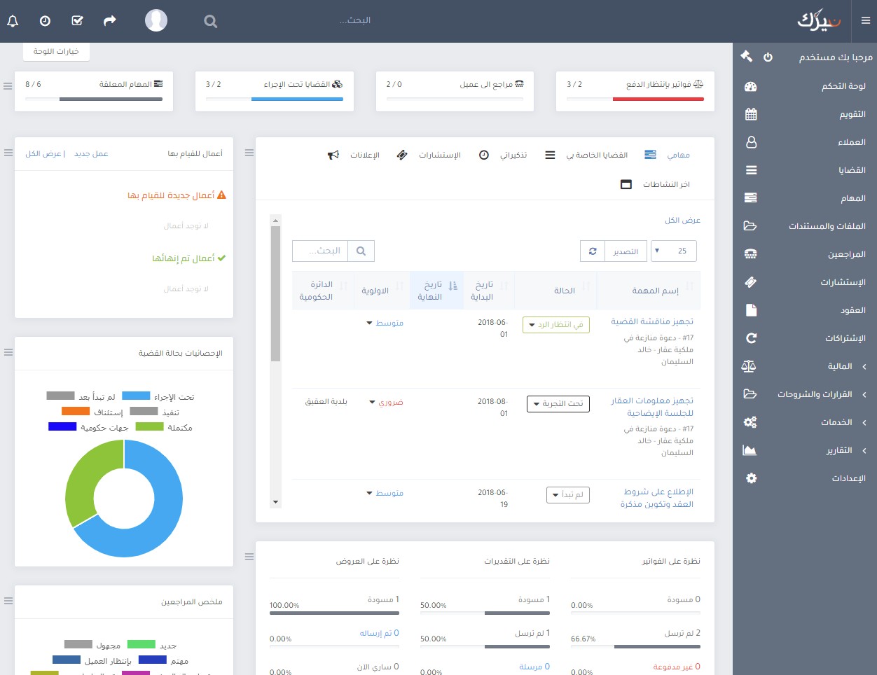 يوفر لك النظام إمكانية إستعراض كافة المهام، والفواتير والقضايا والمعلومات بتقويم مرتب مع إشعارات مباشرة